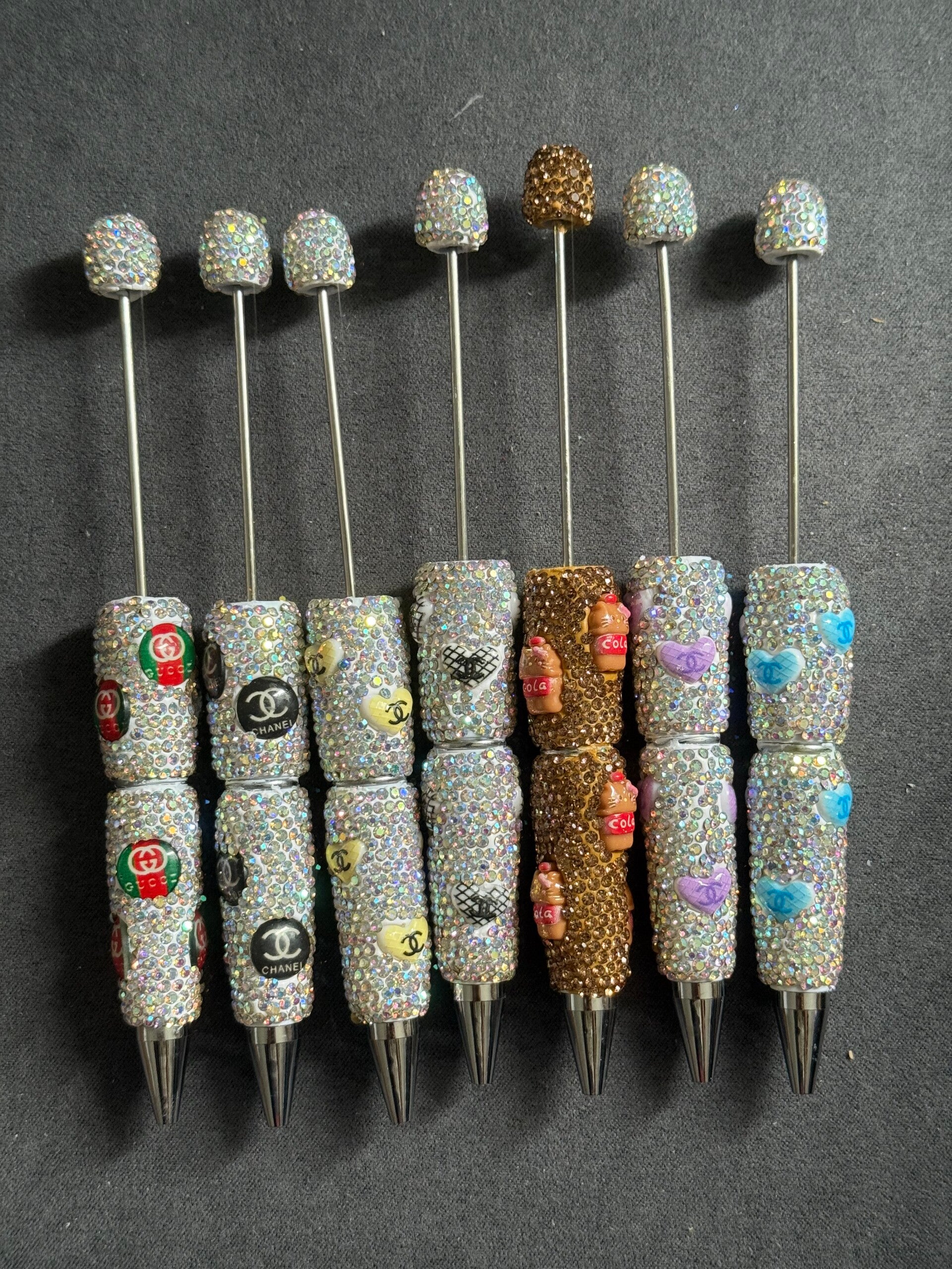 Kugelschreiber und Bleistifte mit Silicon Beads (Perlen) und Acrylperlen selbst gemacht.